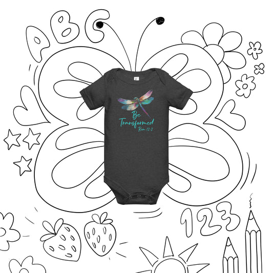 Be Transformed Dragonfly Rom 12:2 Baby Onesie