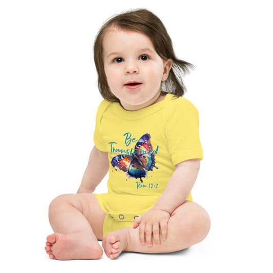 Be Transformed Butterfly Rom 12:2 Baby Onesie