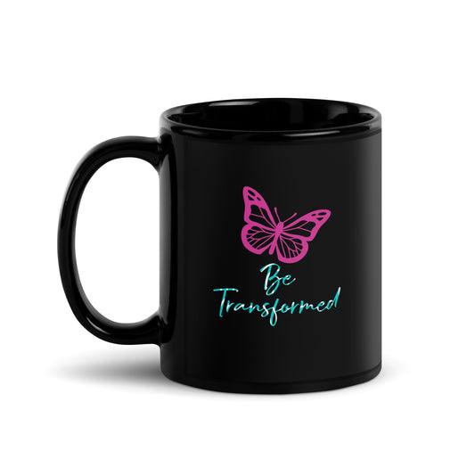 Be Transformed Pink Butterfly Black Glossy Mug