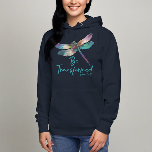 Be Transformed Dragonfly Rom 12:2 Unisex Hoodie