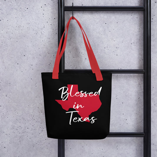 Blessed in Texas Red on Black Dual Side Tote Bag