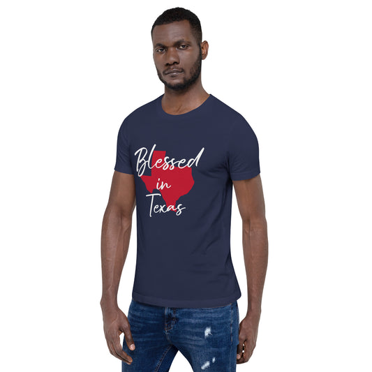 Blessed in Frisco, TX Red/ White Heart Unisex t-shirt